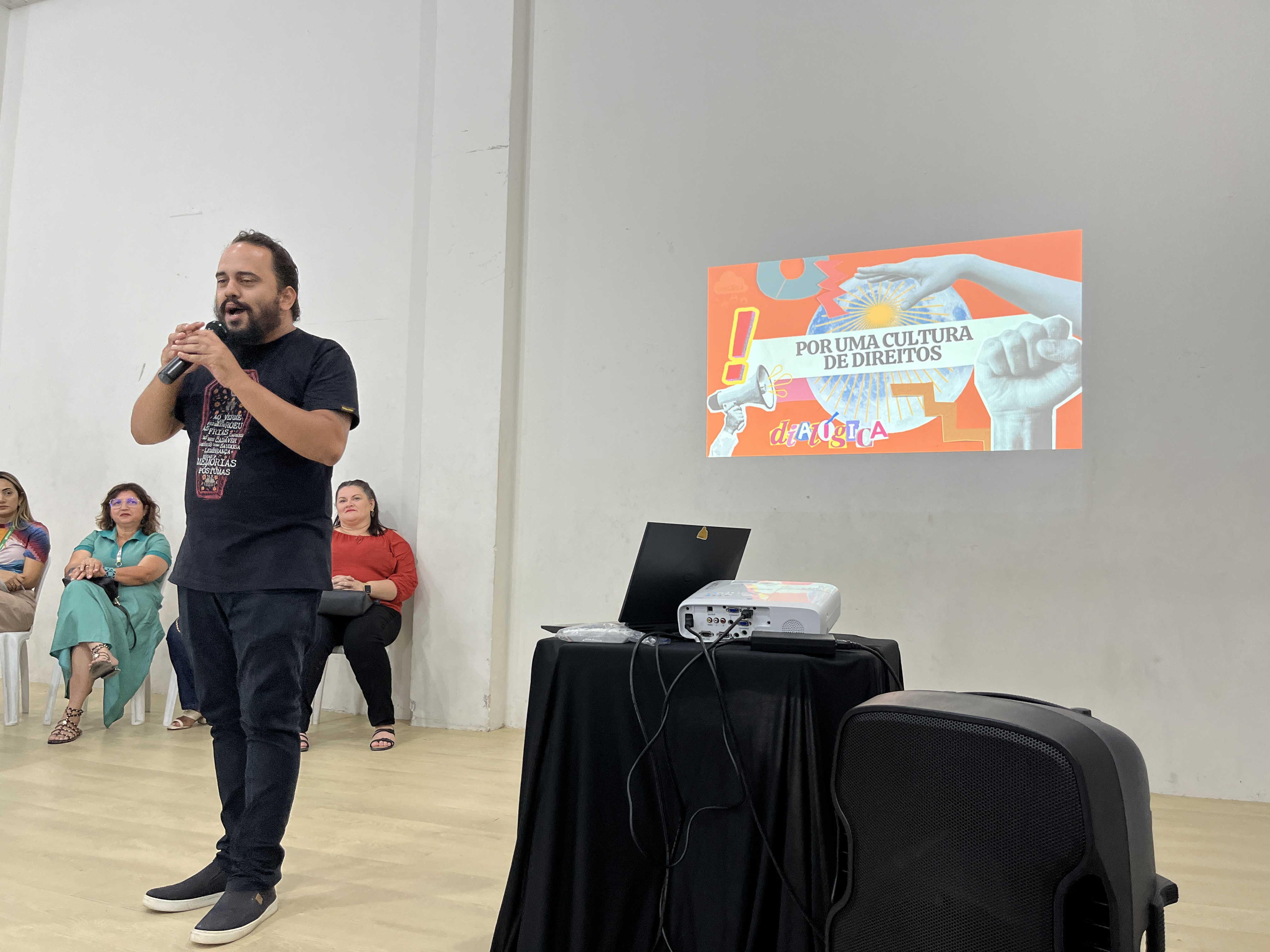 A facilitador da Mobilização foi Jefte Amorim (Professor Universitário em Comunicação). O facilitador trouxe o tema com muita propriedade e de forma interessante abordou os Direitos Humanos, seu histórico, conceitos e de forma interessante e dinâmica conseguiu unir a temática e seus desdobramentos para inspirar possibilidades de elaboração de projetos culturais que contemplem esse debate. O tema foi exposto com ampla e efetiva participação do público já bastante inteirado dos assuntos relacionados aos editais públicos de fomento à cultura. O trabalho de Jefté foi admirável porque utilizando recursos como a leitura de imagem, análise de comerciais e peças de divulgação trouxe à tona reflexões importantes acerca dos Direitos Humanos e as deturpações da atualidade sobre o tema motivadas pelo radicalismo político.