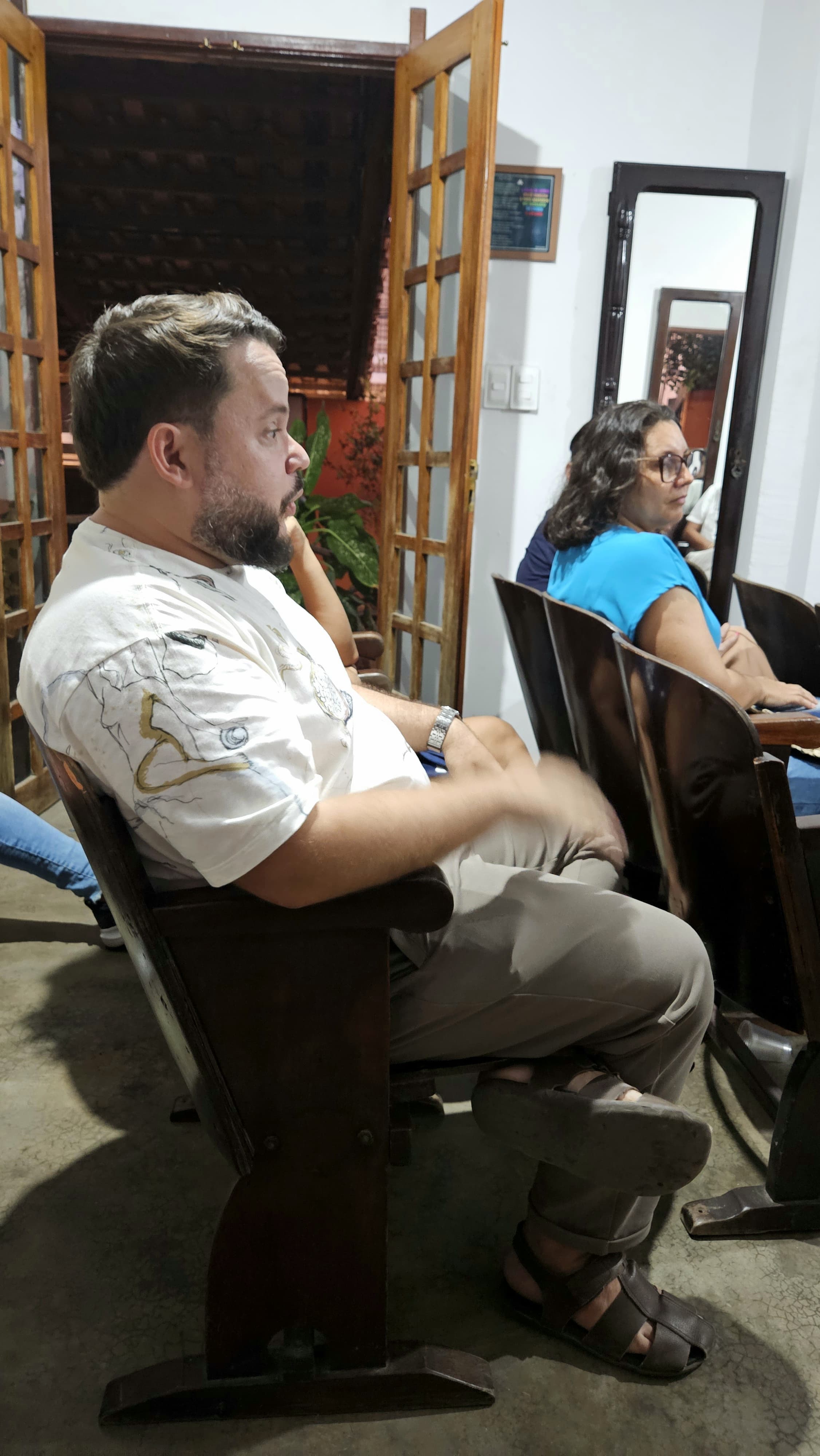 O público, ainda que reduzido, participou ativamente, demonstrando familiaridade com editais públicos de fomento. Entre as falas, ficou evidenciada a insatisfação com a condução das políticas culturais locais (Lei Paulo Gustavo e PNAB), a falta de apoio do poder público municipal e o cenário de dispersão dos grupos culturais em Vitória de Santo Antão.