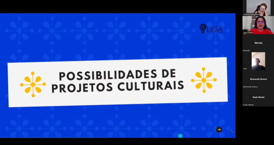 A formação “SimBora: Elaborar Projetos – Região Metropolitana de Pernambuco” foi resultado de uma correalização entre o Comitê de Cultura de Pernambuco e a Liga Criativa Produções Culturais LTDA, especializada em capacitações culturais.